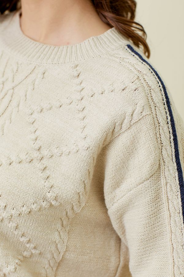 The Charlotte Sweater is a luxurious knit piece, crafted with a classic round neckline, ribbed hem, and piping inset sleeves, all highlighted by an exquisite cable knit front. Perfect for special occasions, this timeless piece is sure to turn heads with its sophisticated elegance.